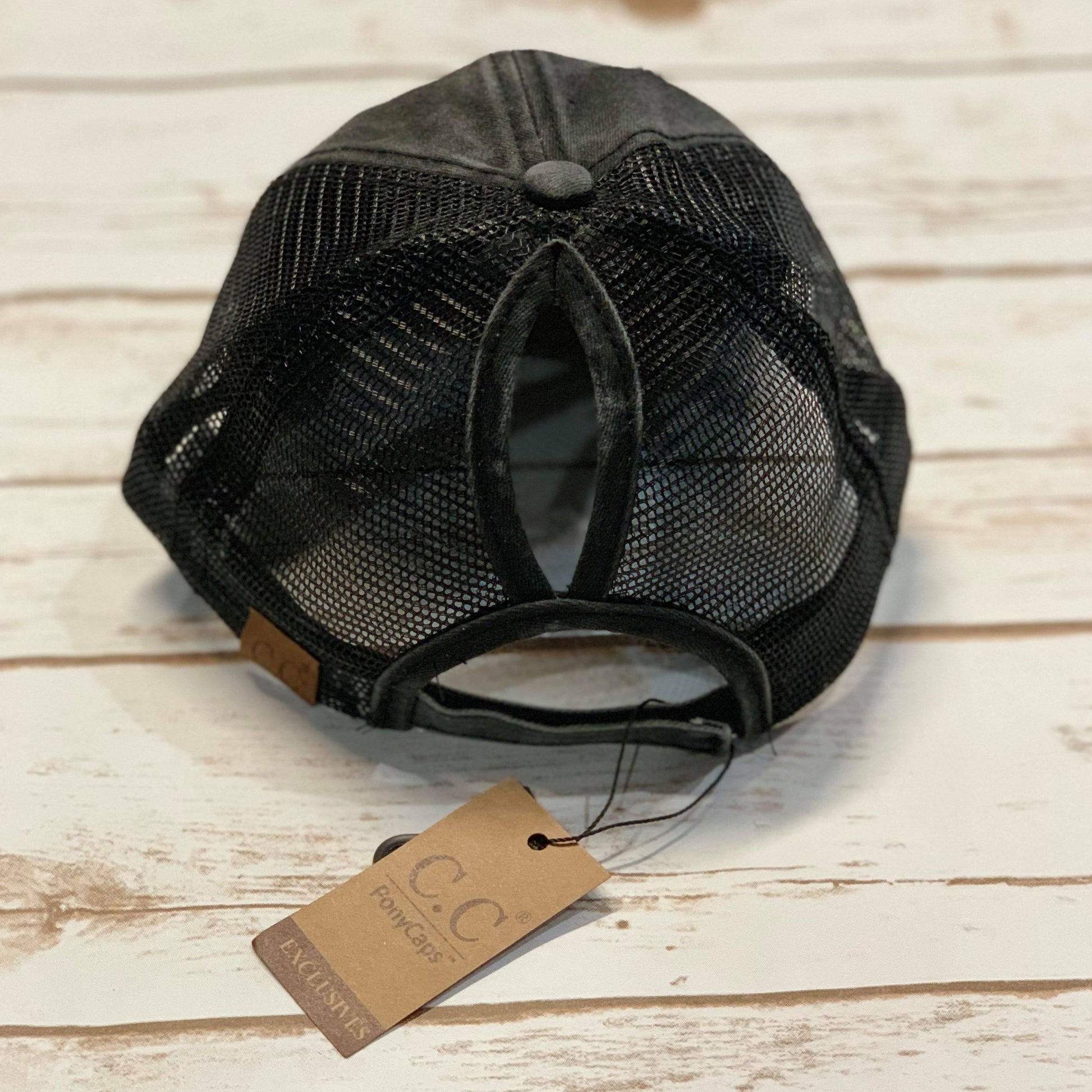 This all NEW Distressed High Pony CC Ball cap is right on trend to wear with all of your favorite summer wear. You will love the fit and comfort of this adorable new high pony ball cap!