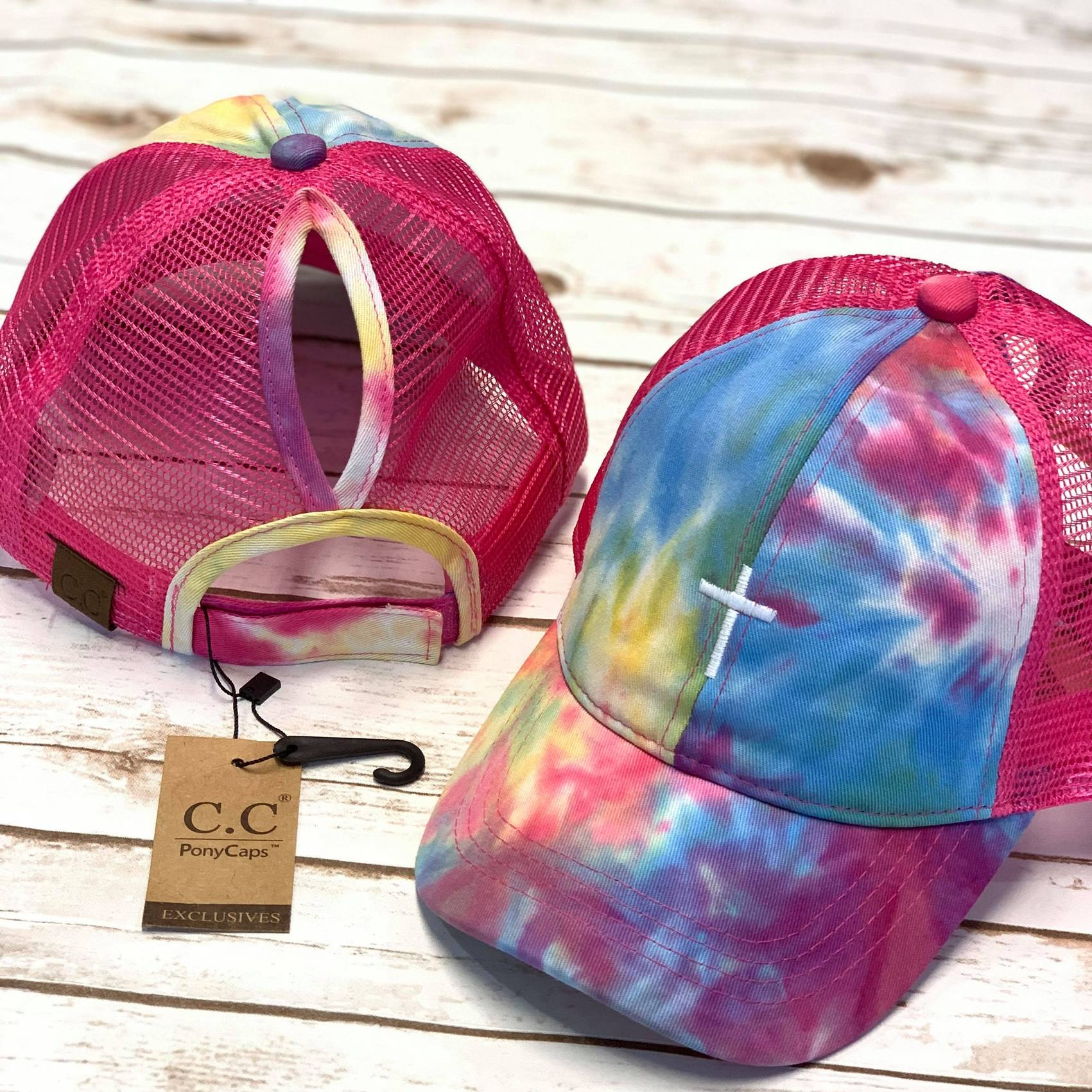 Cross Tie Dye High Ponytail Mesh Back CC Ball Cap